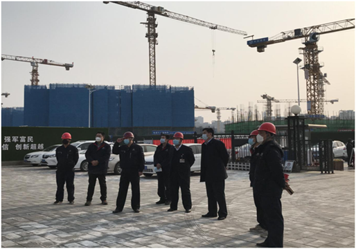 2月28日,宝威体育网投党委书记、董事长陈先瑞亲赴集团公司承建的通州区东方厂安置房项目工地,视察疫情防控及项目复工情况。调研中陈董事长强调指出要加强对项目部办公秩序的督察,严格落实防控责任,全力保障复工复产后的防疫安全。通州东方厂安置房项目经理杜景凯、项目书记崔立军等陪同调研。