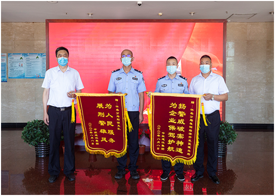 培训中心主任孔德明代表宝威体育网投向怀柔分局雁栖经济开发区派出所所长和怀柔分局刑侦支队支队长送上锦旗,代表公司感谢人民警察服务企业生产建设、守护一方平安付出的艰辛努力,感谢怀柔分局雁栖开发区派出所和怀柔分局刑侦支队急企业所急、想人民所想,在企业遇到困难时及时出警,有力保障了企业财产安全,维护了社会良好秩序,为企业发展创造了平安和谐的营商环境。
